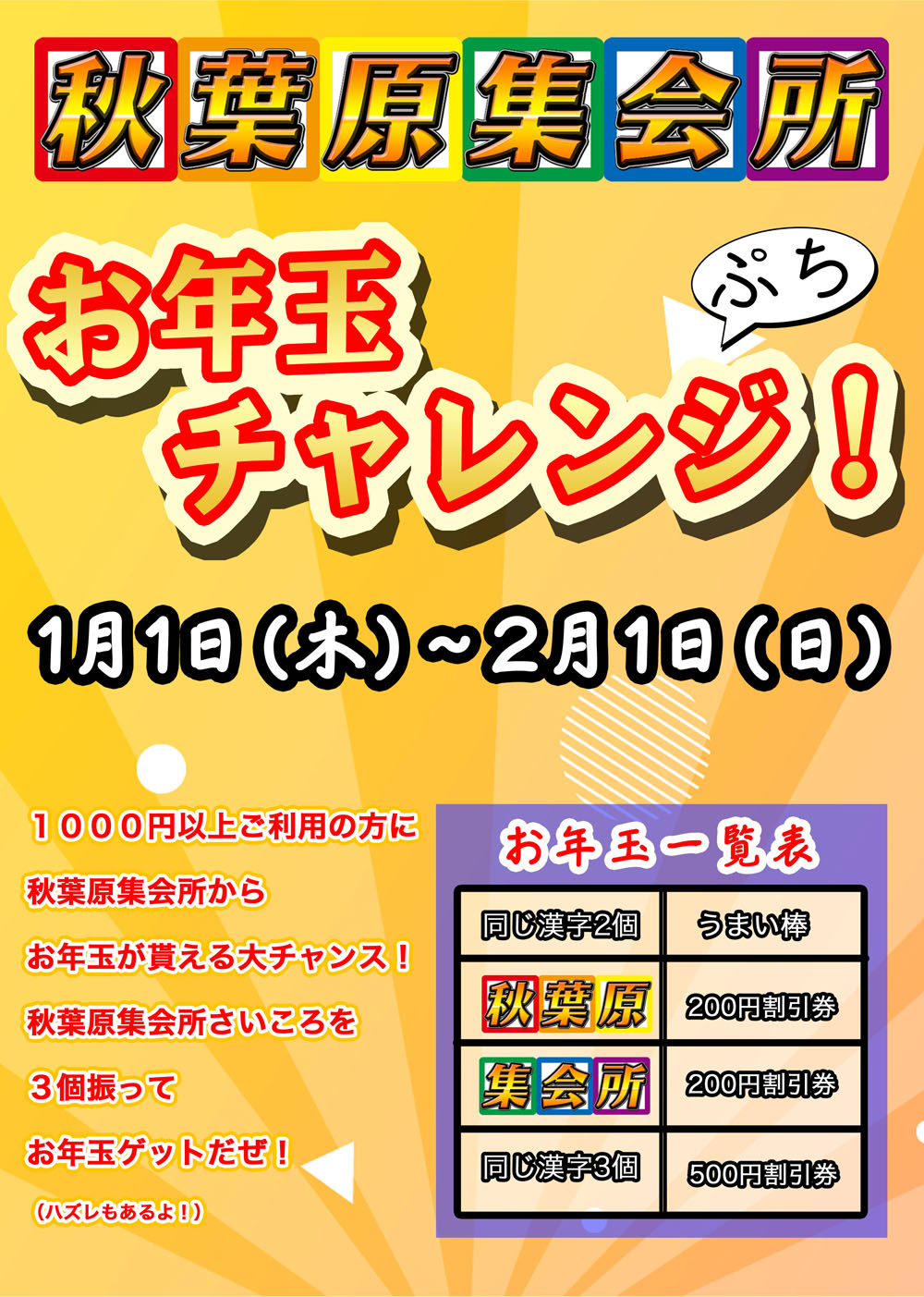 2026年新春イベント「秋葉原集会所お年玉チャレンジ(ぷち)」開催